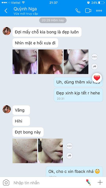 Không chỉ bị Mụn ở mặt, cằm mà còn bị ở Cổ nữa, nhưng TDHH chữa được hết nhé, kể cả Mụn Lưng. Hiện sp tốt, e đang bán và làm đại lí ở quê, vừa làm CTy, vừa bán thuốc, rồi làm Nail. Đúng là còn trẻ cứ làm gì mình thích :D